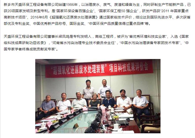 中國(guó)高新技術(shù)網(wǎng)發(fā)布:《關(guān)注:解碼科技創(chuàng)新》——新鄉(xiāng)市天盛環(huán)?!俺瑥?qiáng)氧化還原廢水處理技術(shù)”